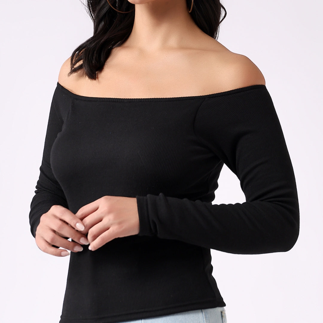 Details: Off The Shoulder, Ribbed Fabric, Full Sleeves