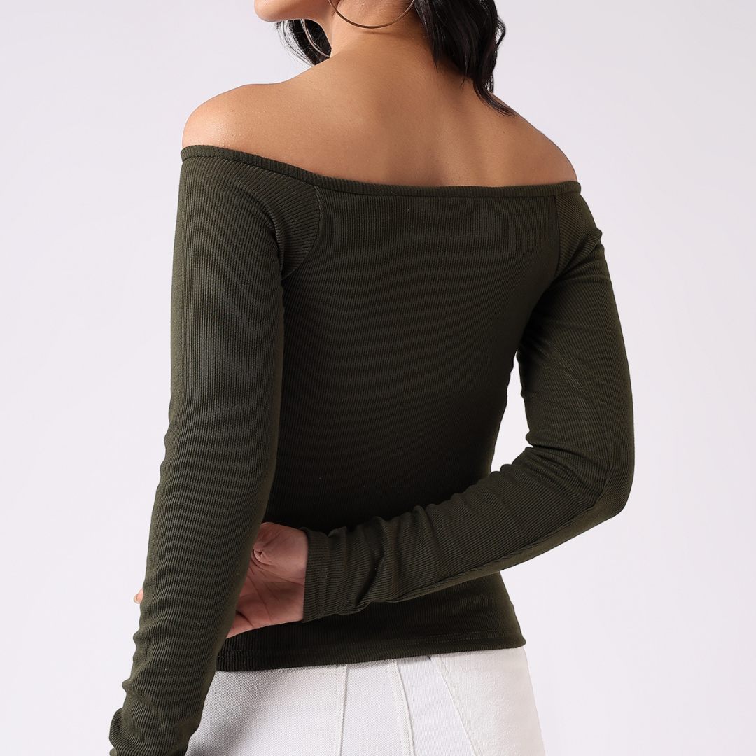 Our Padded Ribbed Off-the-Shoulder Long Sleeve Top is designed to turn heads with its elegant f it and premium ribbed texture. Featuring built-in support, the perfectly crafted neckline stays in place without constant adjusting. A compressive band under the chest provides extra support, ensuring both style and comfort all day long.