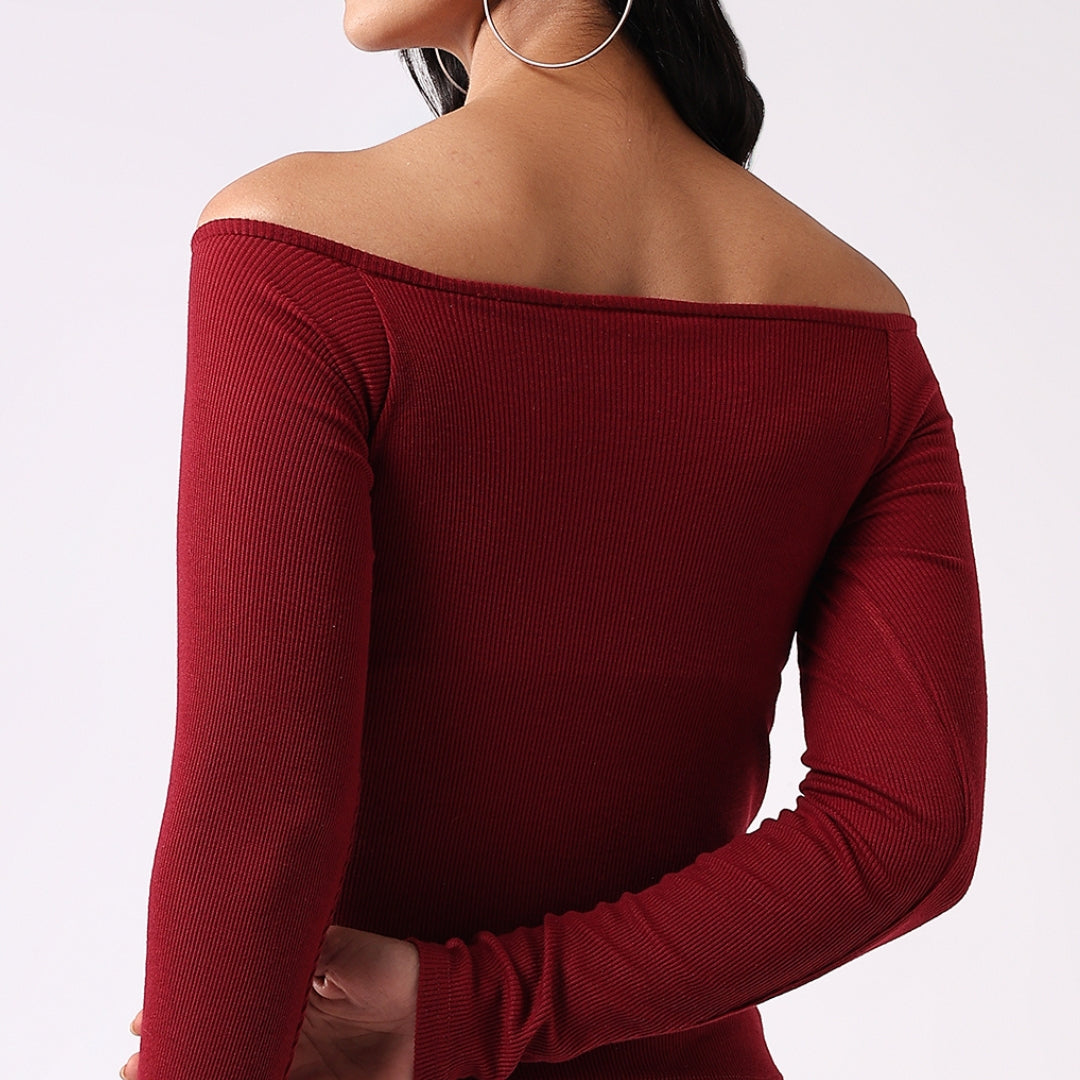 Details: Off The Shoulder, Ribbed Fabric, Full Sleeves